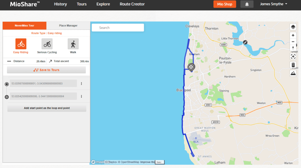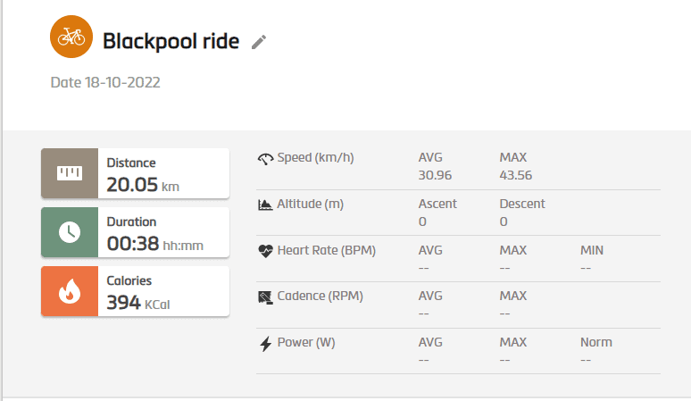 I live on the coast, and cycling down the promenade, there is the road, then lower down a middle pedestrianised section and another lower section below that. I had accidentally routed down the road rather than the middle prom.