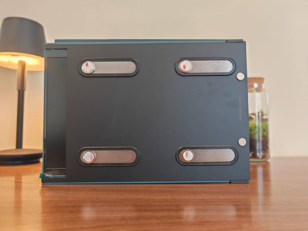 Just like the older Mobile Pixels Trio, this monitor connects to the back of your laptop display with magnets. This requires you to stick metal disks onto your laptop permanently.