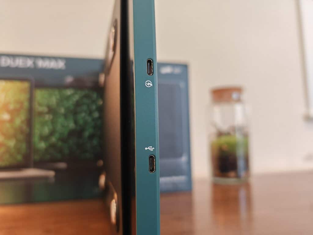 Then, of course, you don’t need a stand for the monitor. Most portable monitors I have reviewed come with some sort of stand; the Acer PM1 had a flip-out stand, but this provided no display protection. The Desklab 4K touchscreen monitor lacked any stand, and the glass touchscreen felt too fragile for travelling. The Arzopa G1 15.6” had a book cover style case, which doubled as a stand, but the cover doesn’t provide the same level of protection as the hard plastic shell of the Duex Max.