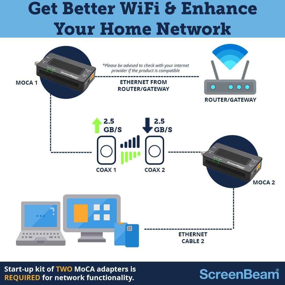 - Requires MoCA adapters: To use MoCA, you will need a MoCA adapter at each end of the connection. These adapters can be somewhat expensive.