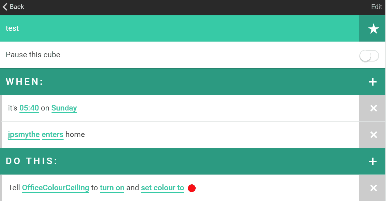 Once everything is all set up you can start playing around with setting up the Cubes. Now, this is where the nCube really shines in comparison to the Devolo. Everything is simple and logical to set up. With the Devolo you had your devices, but then there was groups, schedules, scenes, and rules, it was difficult to remember which section you needed to work on to carry out a certain action. With the nCube, it is basically all one place and the rules are set up with the guide of natural language options to select from.Each Cube is set up in 2 main sections allowing you to select WHEN to do something, then WHAT to do. In the when section you have multiple options, it can be a simple time or sun related trigger or when another device is triggered (eg motion sensor) or when a user enters/leaves home. The location-aware trigger is something that the Devolo system does not have, and it is something that could arguably be the cheapest and most effective trigger. Rather than requiring expensive motion triggers the system uses your mobile phone location to activate your event. It can also work as a handy security feature to monitor who leaves or arrives at your home and when. In particular, this would be great at keeping track of your children.Under the DO THIS section you then tell the device to do something or send a message to a user. With both sections, you can add more than one rule. So, you could have when it is Monday and I arrive home, switch on the Nest and Philips Hue lights. You can also have it so that all or just 1 of the triggers launch a cube.However, its simplicity does have a small number of drawbacks, setting up schedules is a little more work, you basically have to have 2 cubes to carry out on then off. There are no date ranges and there are no reporting features that you get in the Devolo. Neither of these things will be missed by the vast majority of people though.One omission from the system is IFTTT integration, while the nCube should carry out all the functions you would normally do in IFTTT, it just offers a bit more cross-platform compatibility. For example, I use Heat Genius for my home heating, and while it does use Z-Wave you can control the Genius controller from nCube, so it would be good to use IFTTT to bridge these 2 systems.