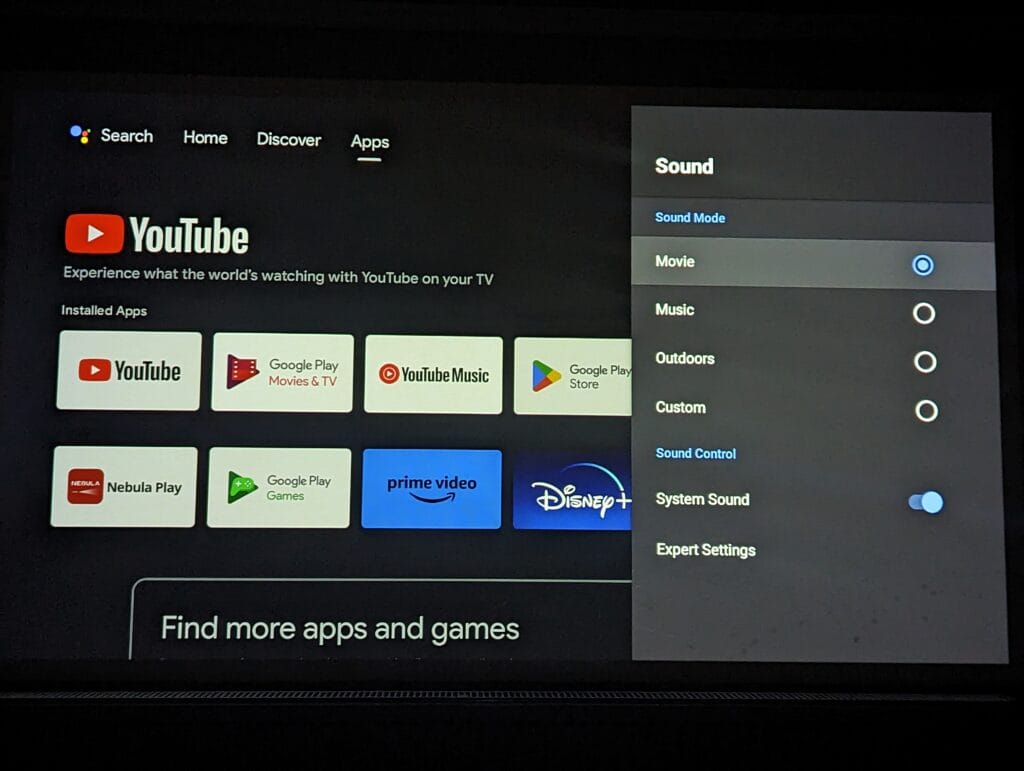 Similar to my recent projector reviews, this runs Android for the OS, and this is Android 11.0, whereas the other projectors were running an older version.