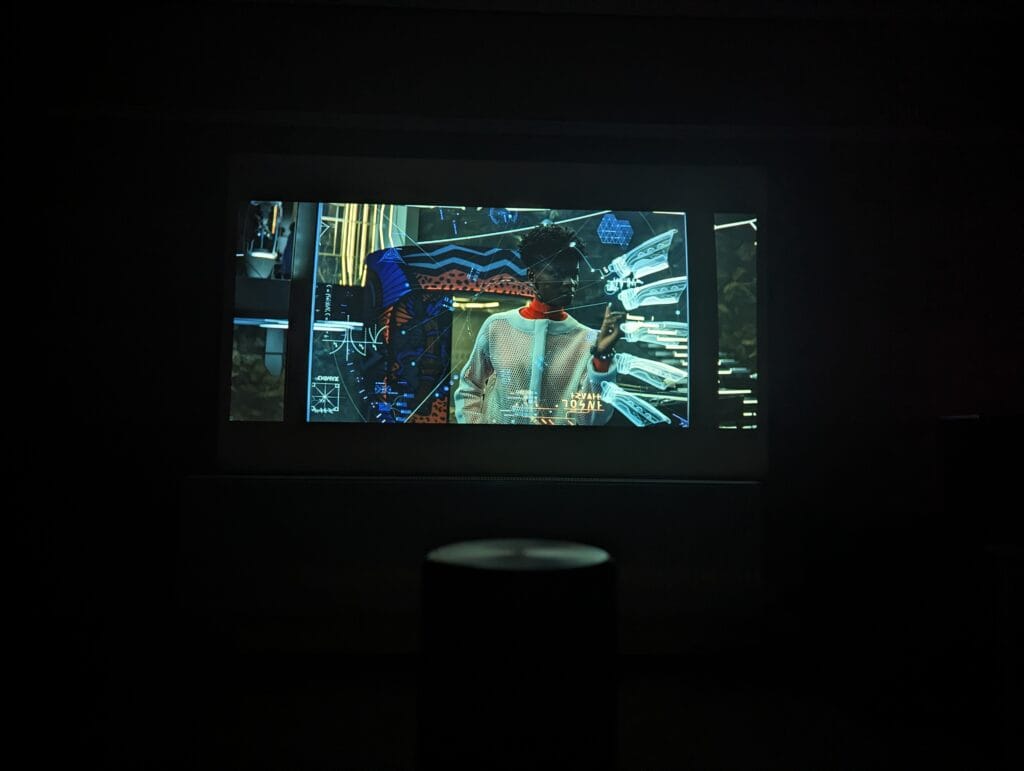 As for image quality, I was happy with the performance of the Capsule 3. When I sat on my chair watching movies projected on the wall across the room, I couldn’t really tell that much difference between the three projectors. Moving closer to the image, the Nebula does seem to have a bit more graininess compared to the XGIMI, but I can only really tell up close. My wall is also off-white and has a grainy texture, so this doesn’t help with image quality in general.
