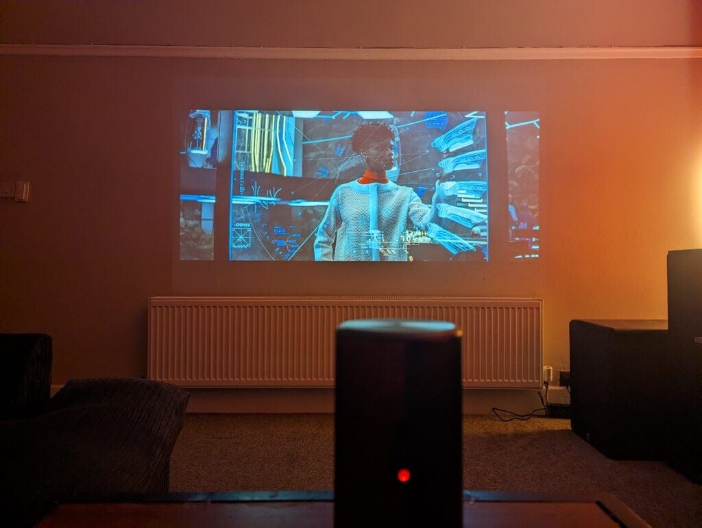As far as brightness goes, and therefore the ability to work in brighter environments, the Nebula Capsule 3 subjectively performs around the same as the BenQ GS50. As you’d expect, the XGIMI Halo+ is definitely brighter and will give you more flexibility when it comes to ambient lighting. While the spec indicates 2.4x the brightness, in real-world usage, it doesn’t feel like such a significant difference. Also, when I dialled up the power/brightness of the XGIMI, there was a considerable impact on the colour profile.
