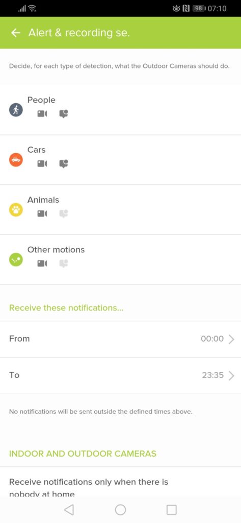 You also have the option to set up different recording and notification settings based on objects. By default, it records every motion, but only notifies for people