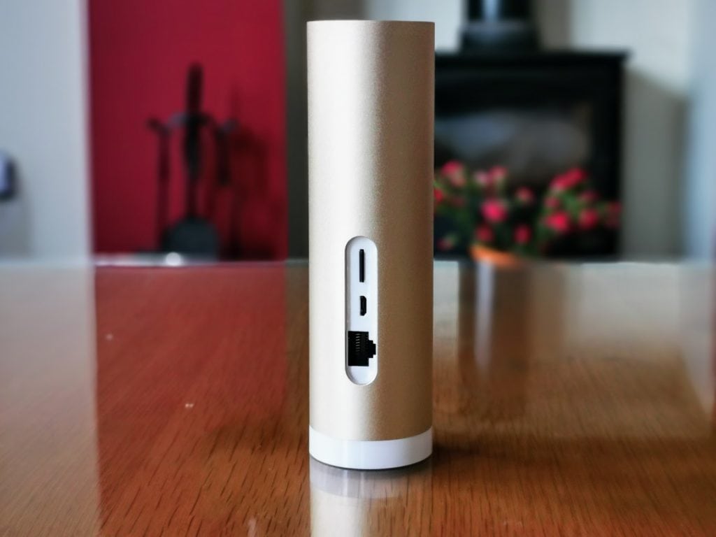 The camera itself is an anodised aluminium cylinder, and there are no options to mount it, you have to place it flat on a surface. It is quite attractive as far as these things go, and it blends in reasonably well.