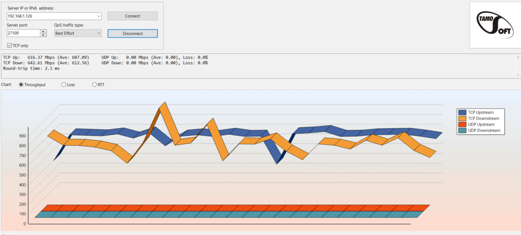 Using TamoSoft Throughput Test speeds averaged around 610Mbps during a 5-minute test. File transfers offered similar numbers with speed averaging around 68MB/s and regularly going over.