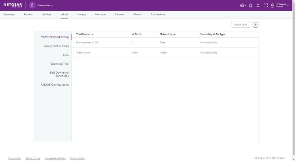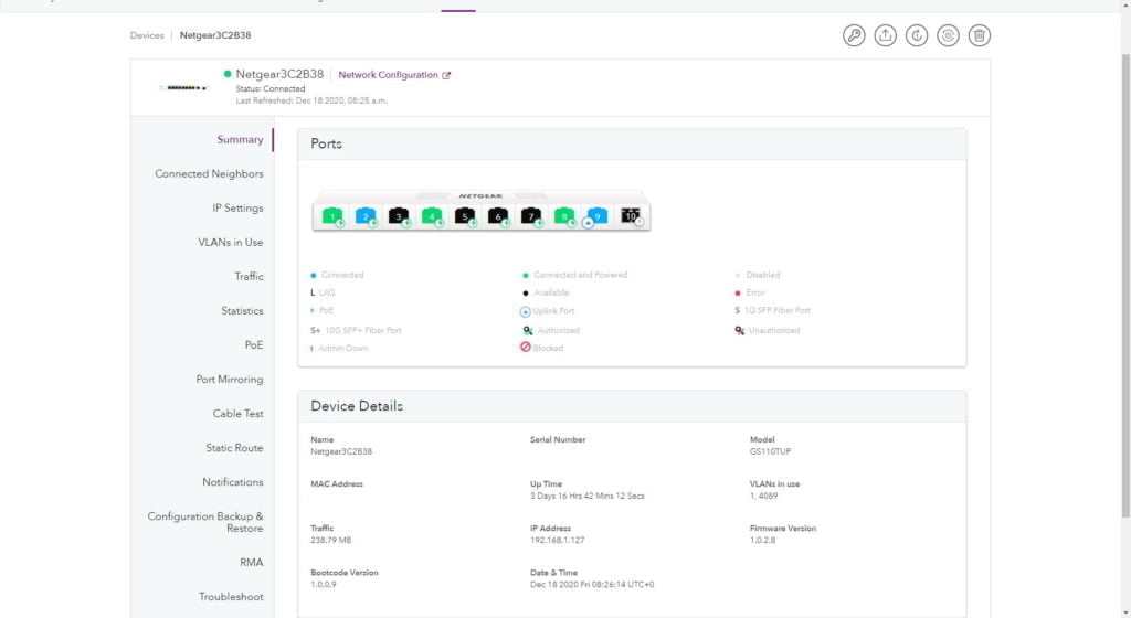 This offers similar functionality but for the wired network, along with the stats you can go into the settings and set up your VLANs, independent or group port settings, Link aggregation grouping, and much more