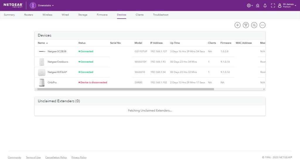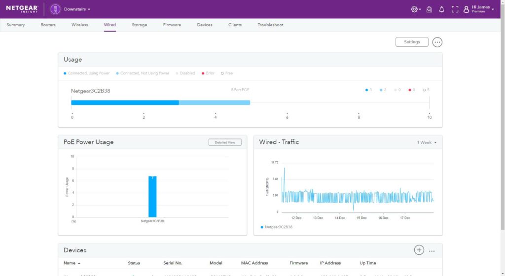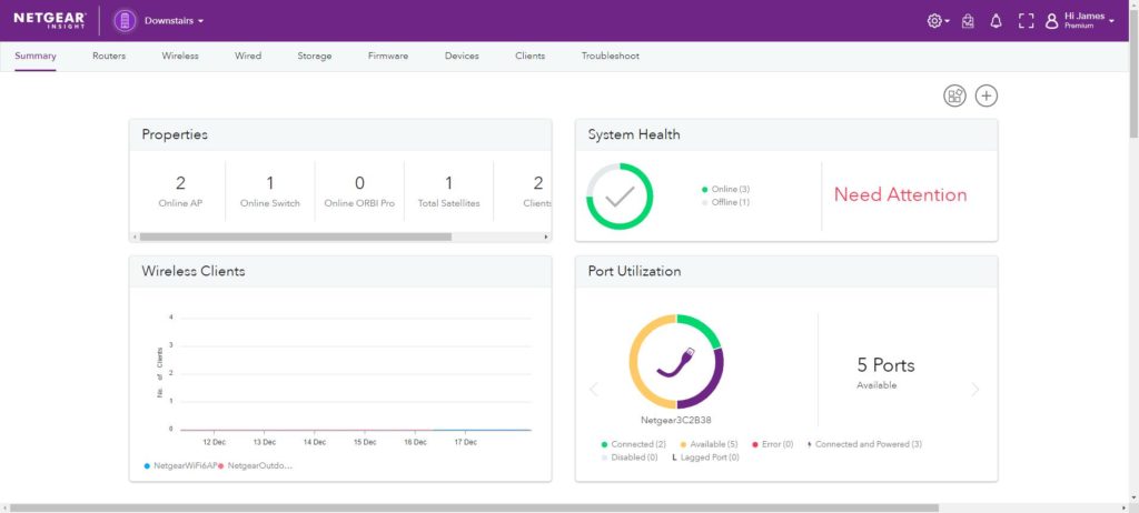 From the dashboard, you are greeted with some basic user data. Whats online, what’s not. There is a system health section as well as all the notifications your devices provide.
