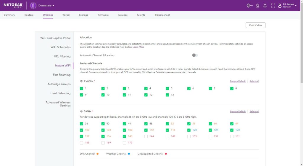 One feature that I particularly liked the look of is the Instant Wi-Fi. With my relatively small network, I can’t test how good this is, but it should identify usable channels, and you can then automatically optimise which channel is used. You can then also set it to dynamically change channels based on the best options at the time.