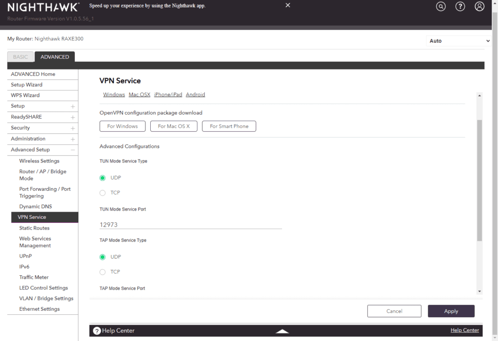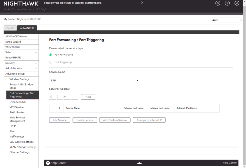 You can set it up via the Nighthawk app or the web interface. If you try and do it via the web, Netgear is quite forceful with trying to make you use the app, but there is a link at the bottom of the page that takes you to the web settings.