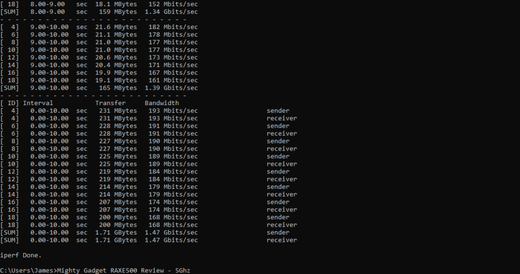 The 6Ghz band doesn’t offer any significant speeds gains over 5Ghz, and the overall speeds are not significantly better than the speeds I achieved when I reviewed the RAX120 two years ago. However, in the RAX120 review, I had intermittent issues with maintaining a 160Mhz 5Ghz band. This should never be a problem with the new 6Ghz band.