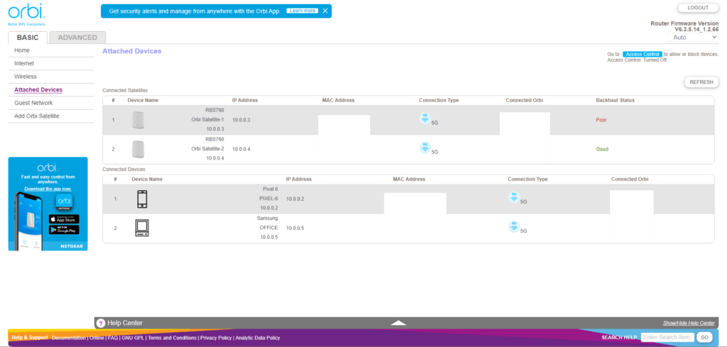I won’t cover the set-up process for Orbi in detail again because it is the same for all of them. Using the Orbi app is the easiest method, you scan in the QR code and follow the instructions. The Orbi satellites are all pre-paired, so you just need to plug them in and wait.