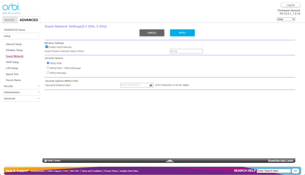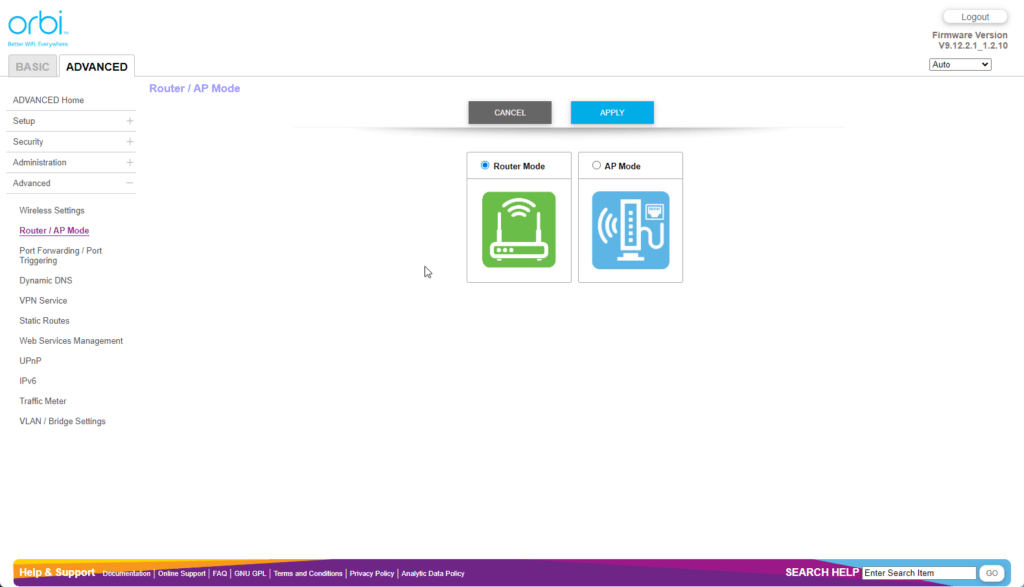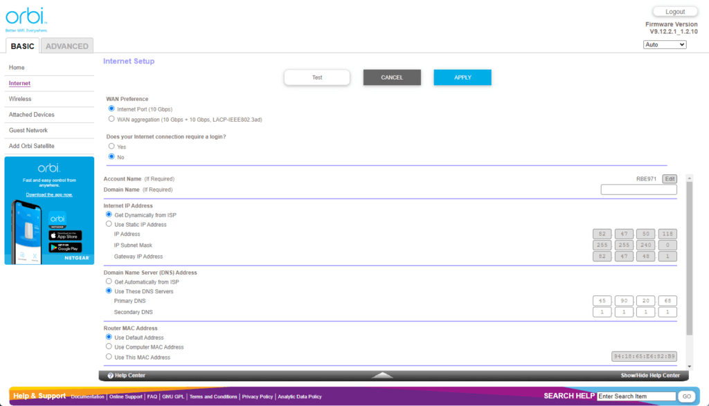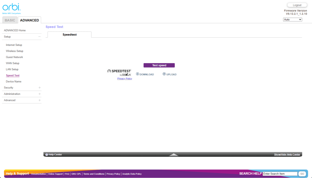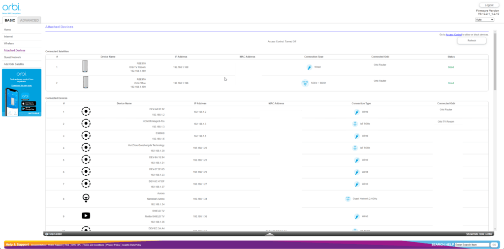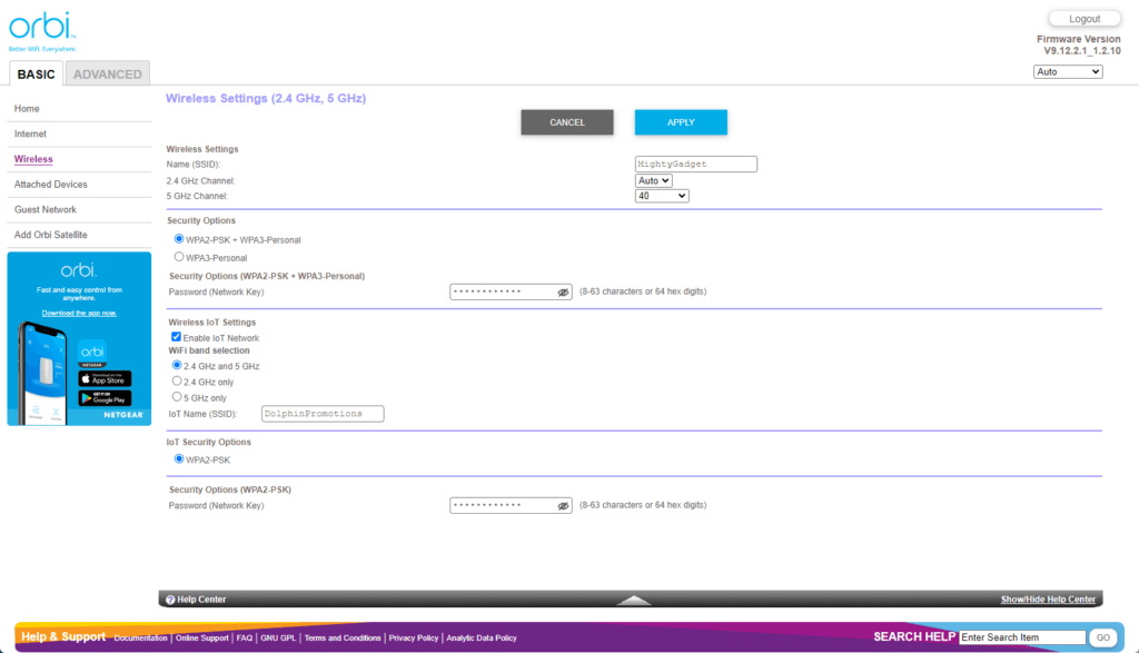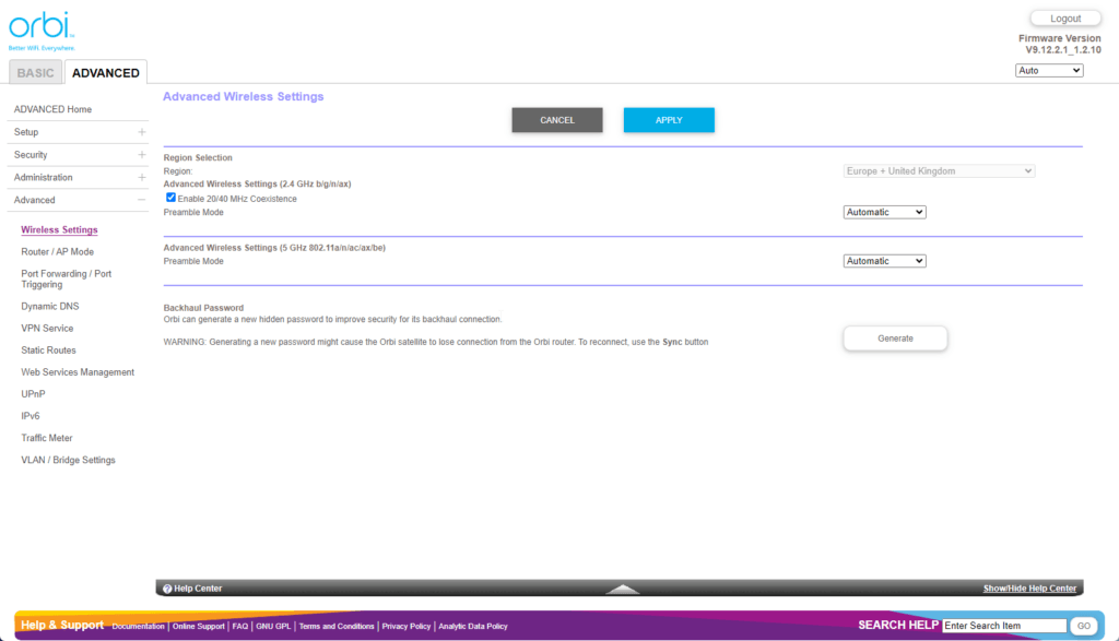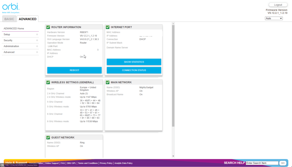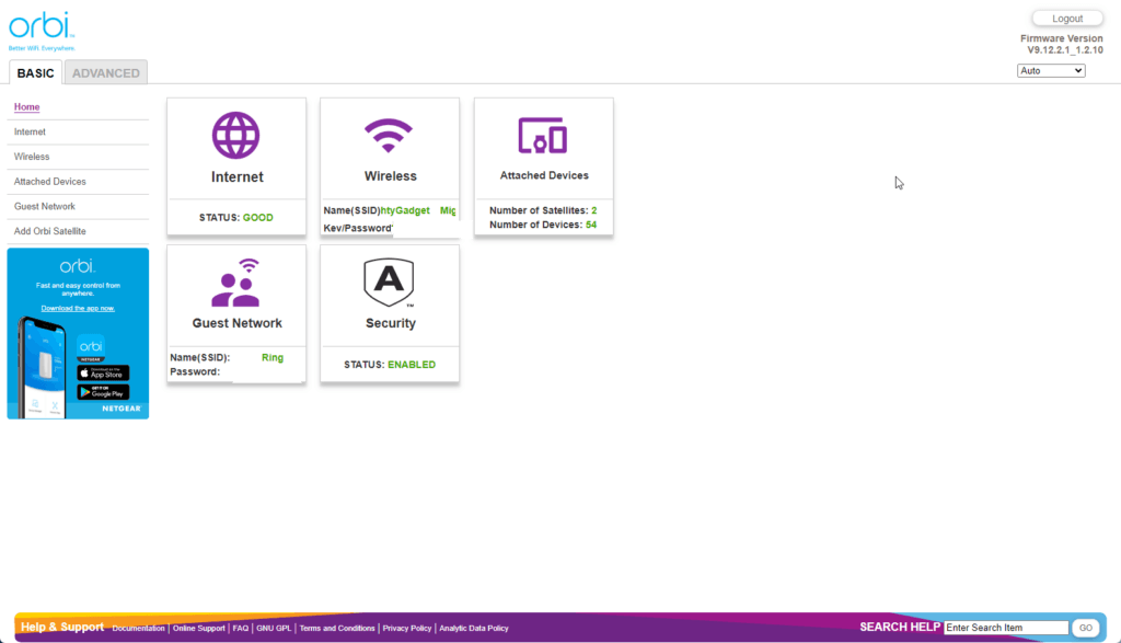 Orbi Web UI – Limited settings customisation