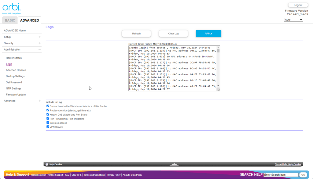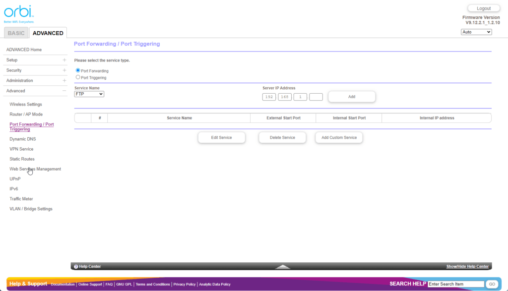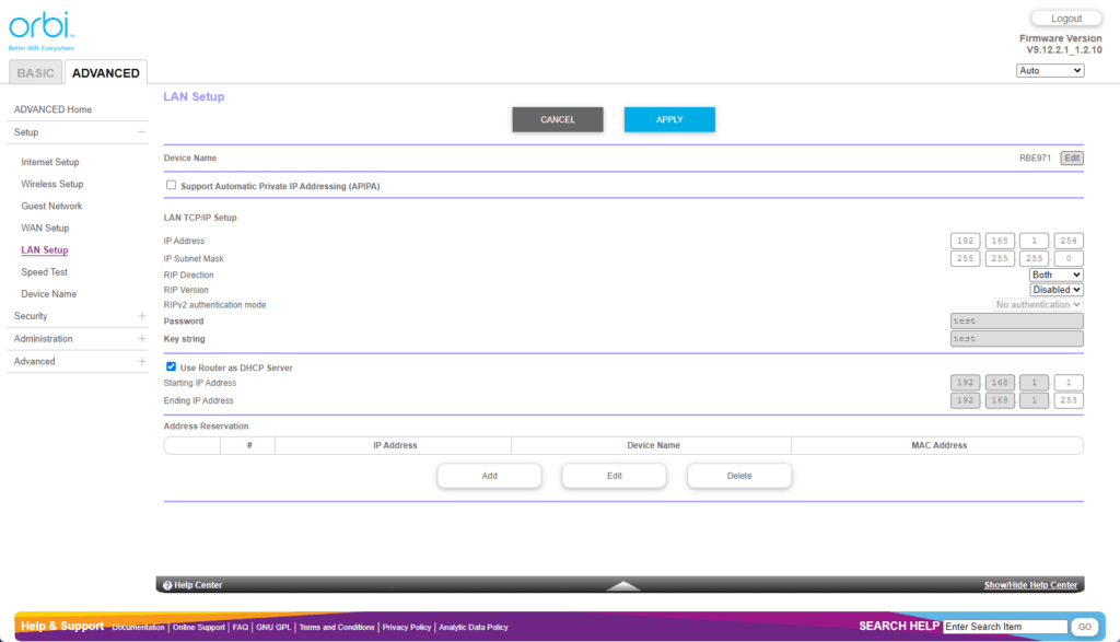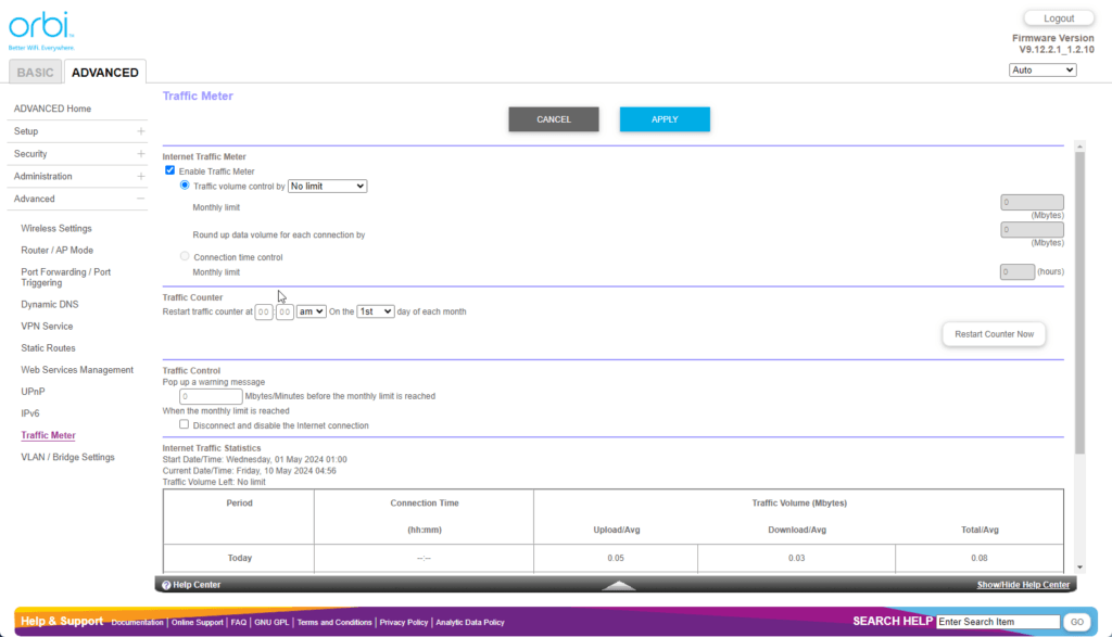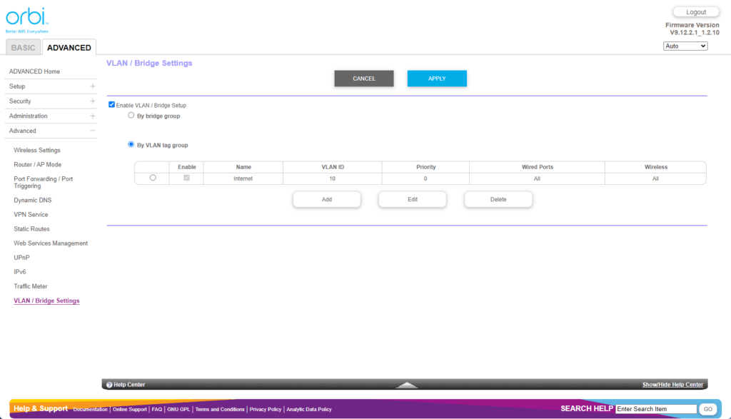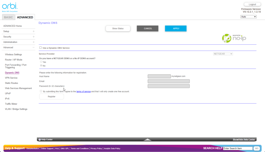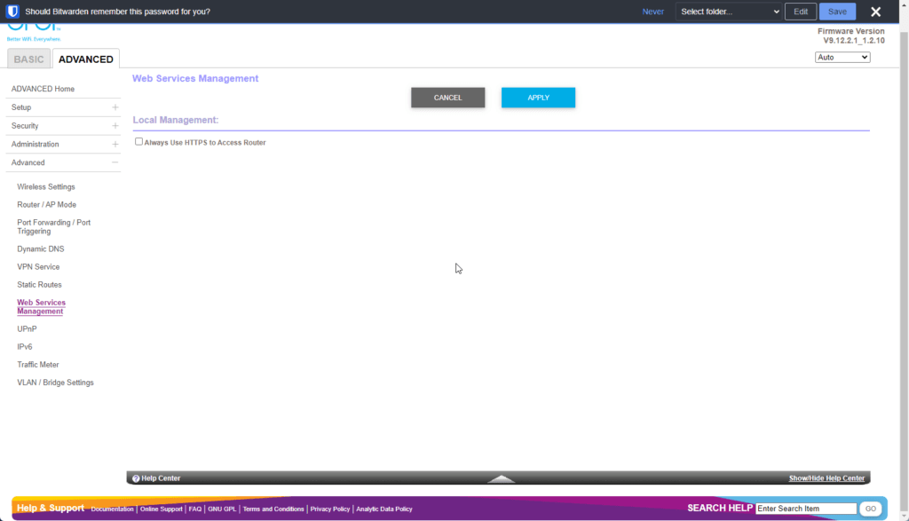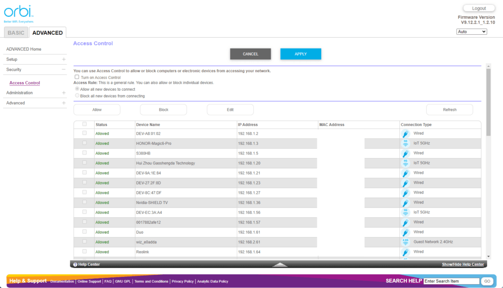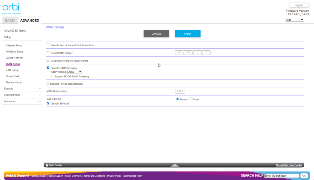 Orbi Web UI – Limited settings customisation