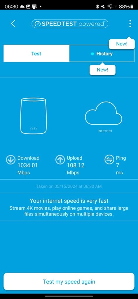 The Netgear Orbi RBE973 is an exceptional quad-band WiFi 7 mesh system that delivers unparalleled performance and coverage. Its ability to provide multi-gigabit WiFi throughout the home is truly impressive, especially when considering the throughput achieved by the satellites using the 5GHz/6GHz MLO backhaul connection.