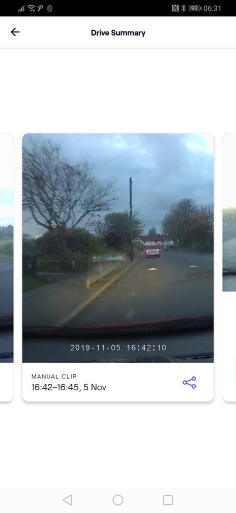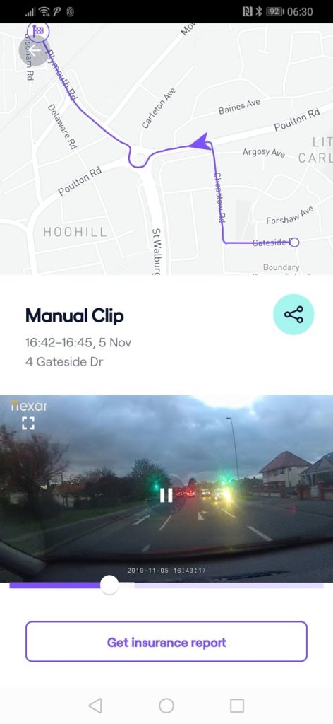 When the app detects a hard brake or another more serious event it will flag it within the app, you can then view the footage of what happened. You also have the option to send an insurance report off, this either can go to your insurance provider or you can send it to yourself.