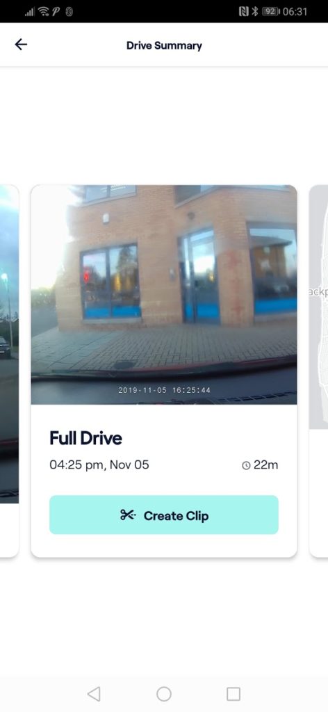 When you complete a drive, you can select the drive and view the drive route. You then have the option to create a clip from within that drive.