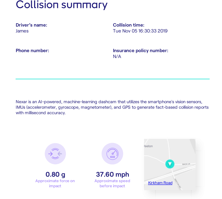 displayed on the Nexar app.