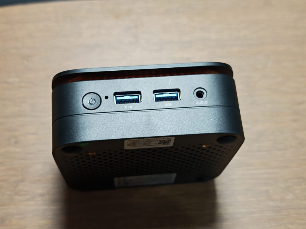 The mini PC also includes a headphone jack for audio output and supports expansion via an M.2 2280 slot, which is already occupied by the SSD. There is also an M.2 2230 slot for Wi-Fi, which is also pre-occupied.