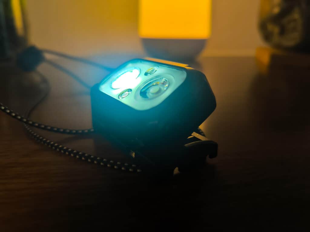 With both lights at maximum brightness, you will get around 2 hrs 40 mins runtime. If I was hiking or any other endurance activities in the dark, I’d probably use just the floodlight, which achieves a 23m throw distance at 200 lumens and increases the run time to 4h 15 minutes.