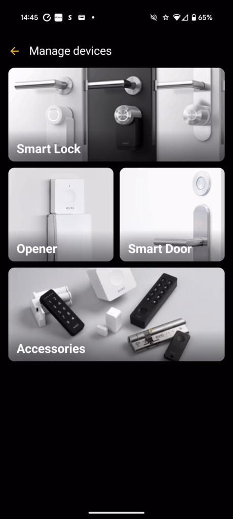 The Nuki mobile application provides comprehensive control over both devices, with separate sections for lock and keypad management.
