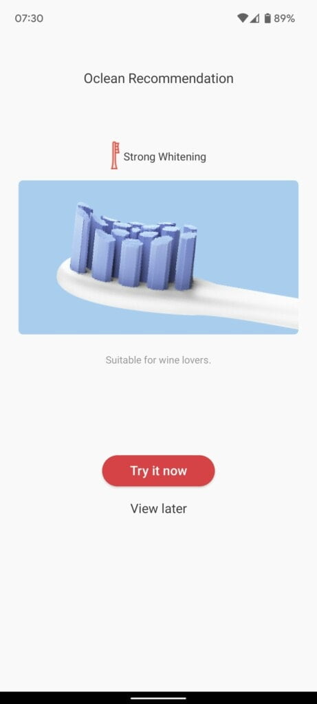 Pairing the toothbrush up is easy, the app immediately identified my toothbrush. It then asked me several questions about my teeth and diet then provided a recommended brushing profile (in my case, whitening).