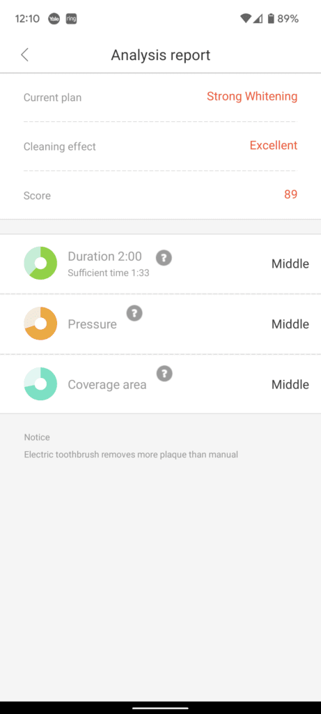 Overall, the app is good, and it has motivated me to brush my teeth longer and make sure I get in all the nooks and crannies. Whether or not I commit to using the app to monitor my progress in the long term is another question.