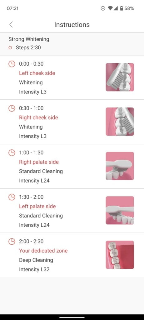 The app has guides for each of the profiles, and you ideally should follow this plan because it changes the intensity for each region of your mouth.