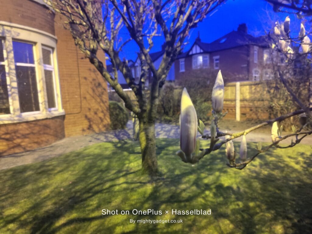 The OnePlus 9 Pro does a good job, but adds a blue hue in very dark situations. Both the OnePlus 9 Pro and Huawei P40 Pro struggle a little outdoors when trying to take photos of blossoming trees due to the branches swaying causing some bluriness.