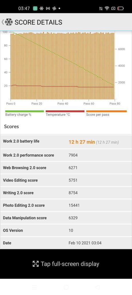Running the PC Mark benchmark provides a reasonably impressive result, while the battery may not be massive, the chipset is efficient as is the FHD+ AMOLED display.