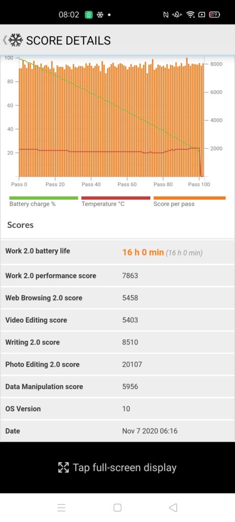 Running the synthetic PC Mark battery test the phone scored an incredible 16 hours, easily beating the Realme X50 even though it has a physically larger battery.