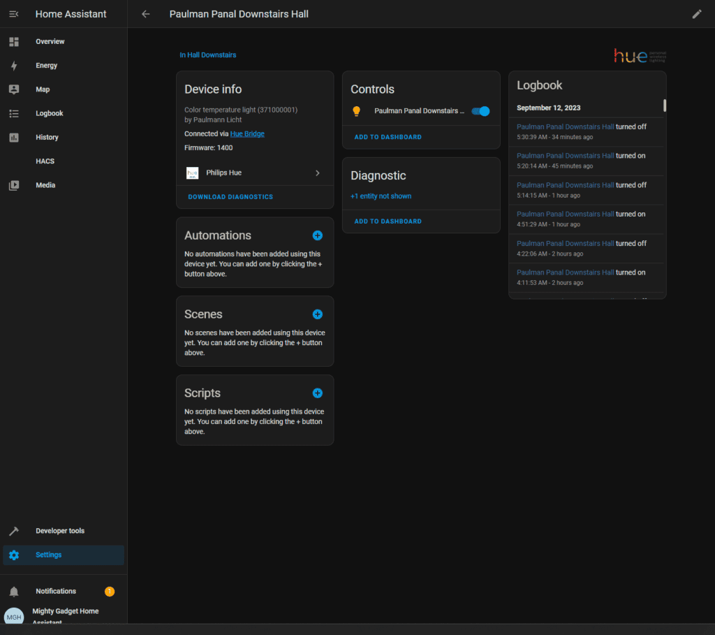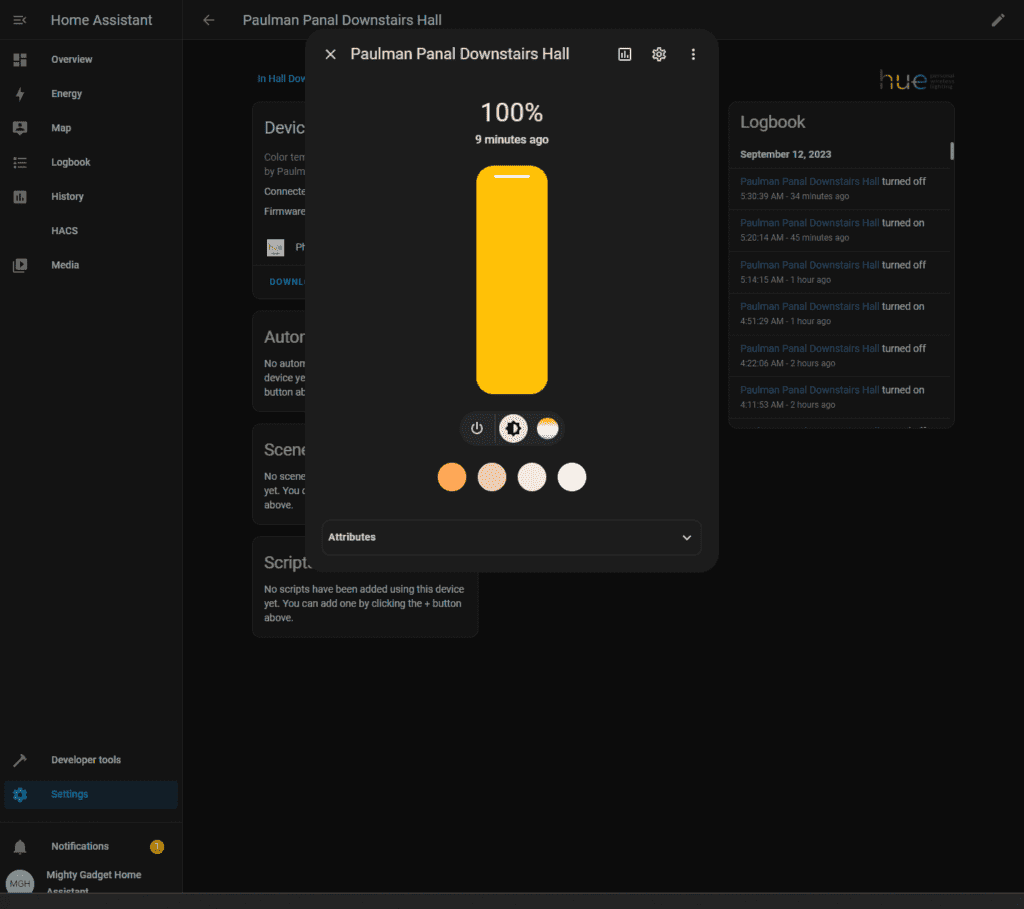 With the panel integrated into Philips Hue, it shows up natively under the devices within the Philips Hue section.