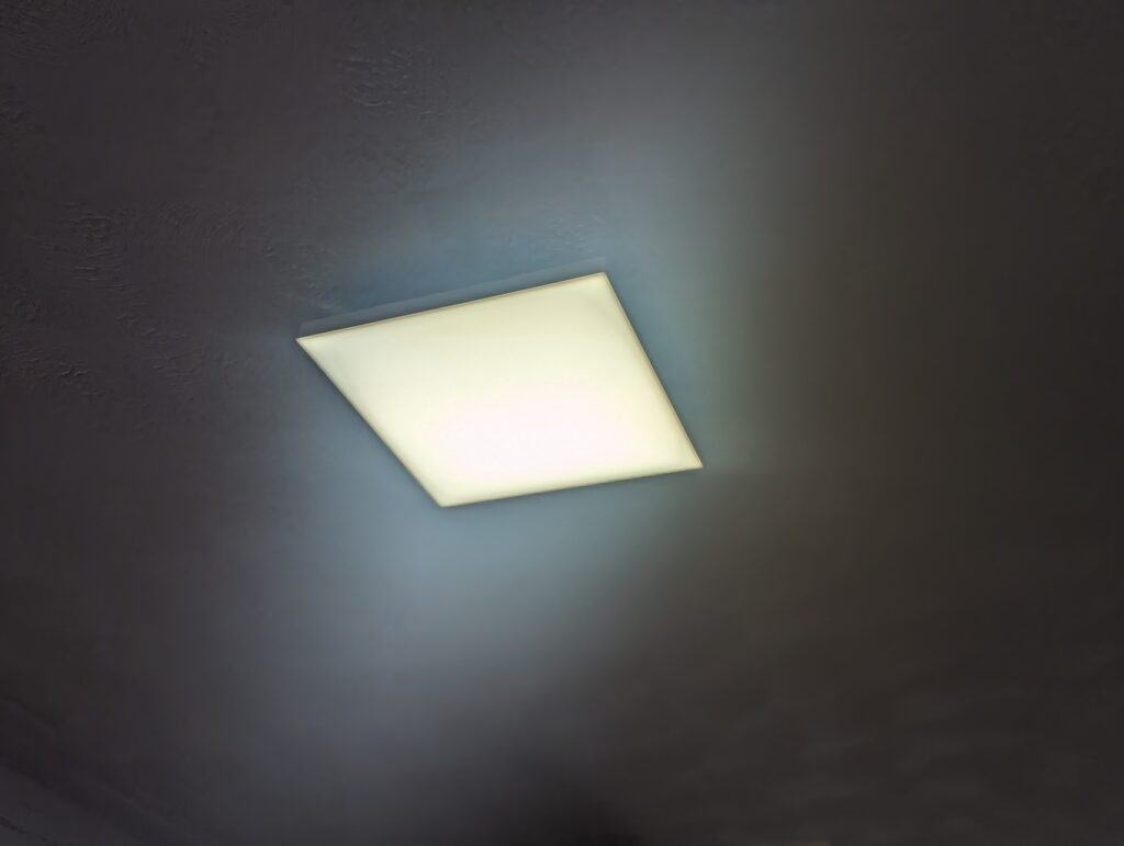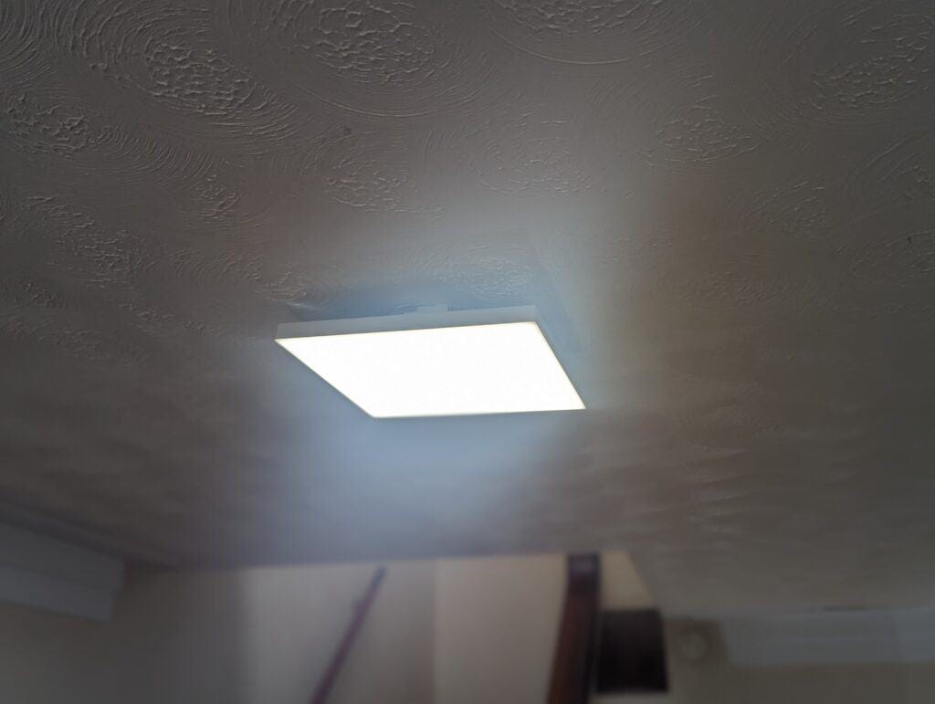 This panel replaced a ceiling pendant in our hallway that used a single Philips Hue ST72 Edison bulb which had a lumen output of just 550 lm. Due to the weird layout of my home, it is a very dark hallway, so that single bulb meant the hallway was always a bit dark and glum.