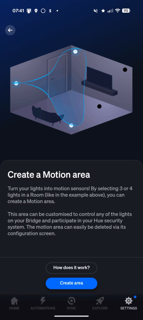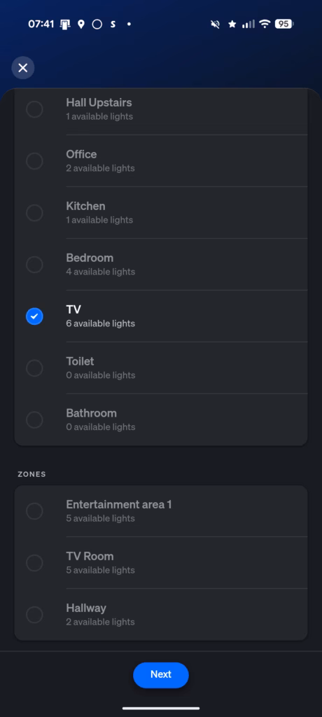 Most of my Philips-branded lights, accessories, rooms, zones, and scenes transferred without issue. The app maintained all my carefully configured room layouts, scene settings, and automation rules. Even complex entertainment zones for my Hue Sync boxes came across intact, though I did need to re-authenticate the Sync boxes with the new bridge.