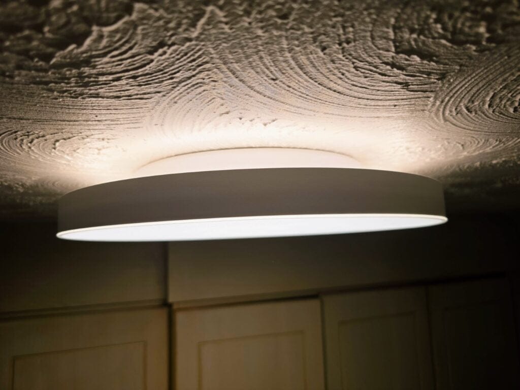 The Philips Hue Datura Ceiling Light is even more expensive, but it is 30% brighter while only being 19% more expensive, and the light has a smaller form factor and produces a more aesthetic lighting effect thanks to the upwards-facing light.