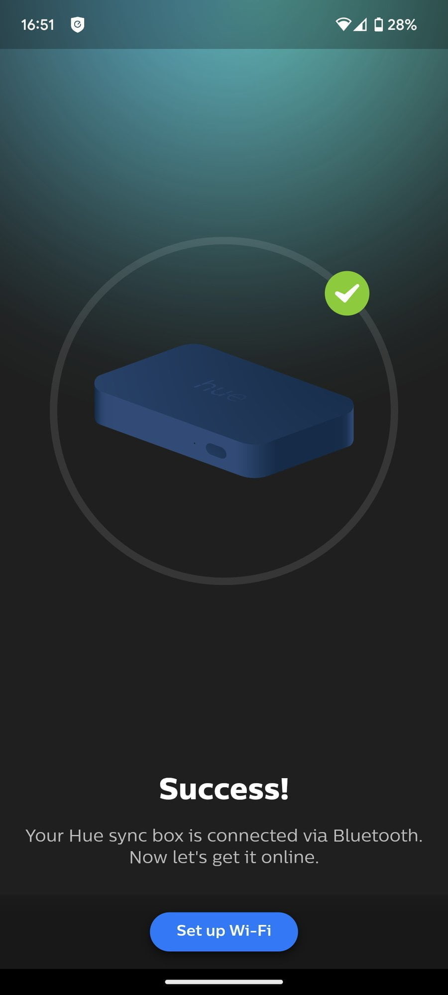 Setting up the sync box is a little different than most of the Philips Hue gear. For a start, it uses a different app called Hue Sync. Then it has Bluetooth for the set-up process but then connects via 2.4Ghz WiFi.