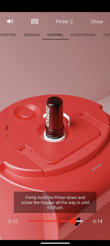 As previously mentioned, the new Pinter 2 has an additional port on the rear, which then allows you to add hops for more flavour further down the brewing process. This is quite clever because they have done it in a self-contained and presumably sterile way. The hopper has a seal on it, and you screw it directly into the rear of the Pinter 2, breaking the seal and allowing the hops to go into the Pinter without any exposure to the air and bacteria.