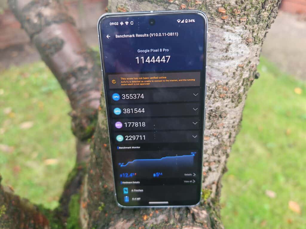 In Antutu, the Google Tensor G3 on the Pixel 8 Pro, scores a respectable score of 1,144,447, but this falls short of 1,367,374 Qualcomm by 16%.