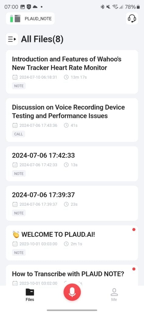 For transcription, you need to transfer the recording from the Plaud Note to the app. When you connect your phone to the Plaud Note it will do this automatically. However, if you have long call recording, this is a very slow process. You can speed it up by connecting to the Plaud WiFi hotspot, which claims to speed up transfer times by tenfold.