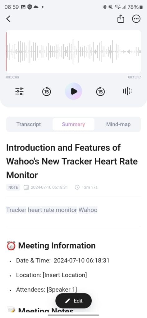 - Summary generation: Users can create AI-powered summaries of their recordings directly within the app.