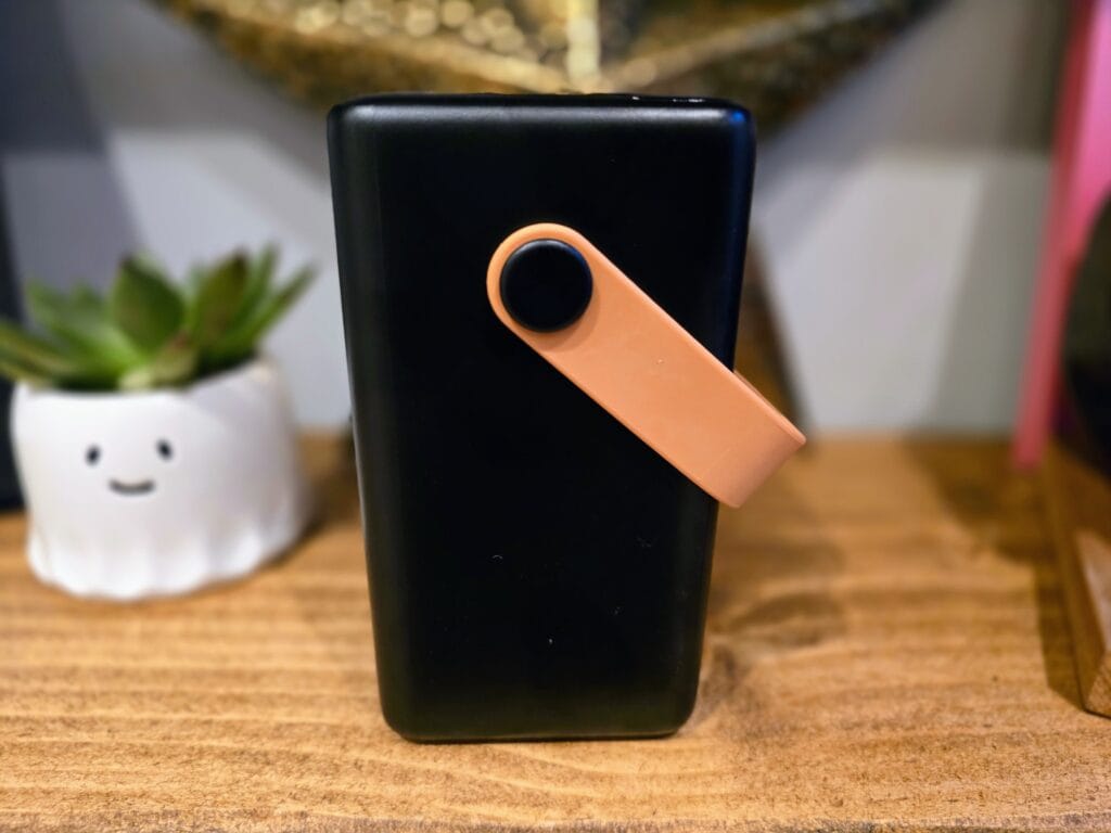 The PowerAdd Pro 50000mAh features a square design reminiscent of a camping lamp, with dimensions of 7.5 x 7.5 x 13.86 centimetres. The power bank is predominantly black, with an orange handle and power button adding a touch of contrast. Weighing 1,145 grams, it’s not a device you’ll casually slip into your pocket, but the integrated handle makes it relatively easy to carry.
