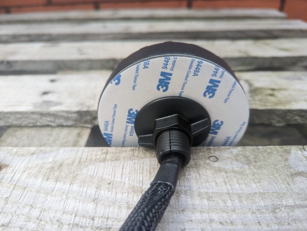 For the time being, I have set the Poynting PUCK up as a temporary antenna using the magnetic base. This works as expected; the magnetic base sits flat on the bottom of the PUCK and has a channel for you to route the cables out the side. With it being a big steel box, it is quite easy to mount on the roof of the boat as and when needed.