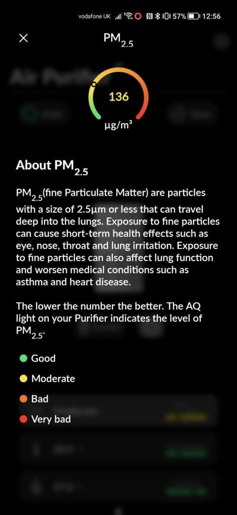 Within the app, you get a basic air quality reading, but clicking one of the variables will give you the exact reading and an explanation of what it is.