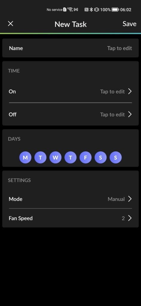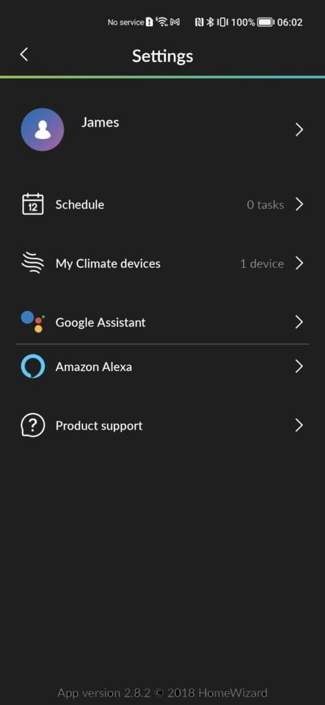 You can also set a timer, or within the settings menu, you can set the schedule. It is then possible to link this to either Google Assistant or Alexa.
