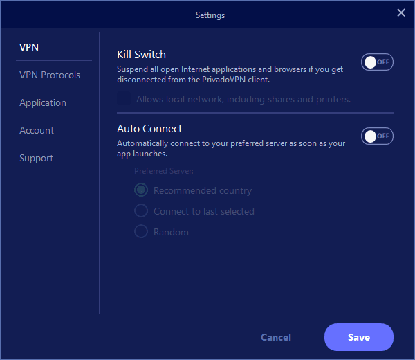 Within the settings, you can set it up for the app to auto-start when Windows loads and also auto-connect. You can also have a Kill Switch enabled, which disables all connectivity if the VPN disconnects. Therefore, it is quite easy to stay secure 100% of the time.