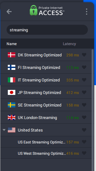 One of the interesting features of PIA is that they have special servers that are dedicated to streaming. Many of the general servers are compatible with the likes of Netflix, but you can select these optimised servers for the best overall experience.