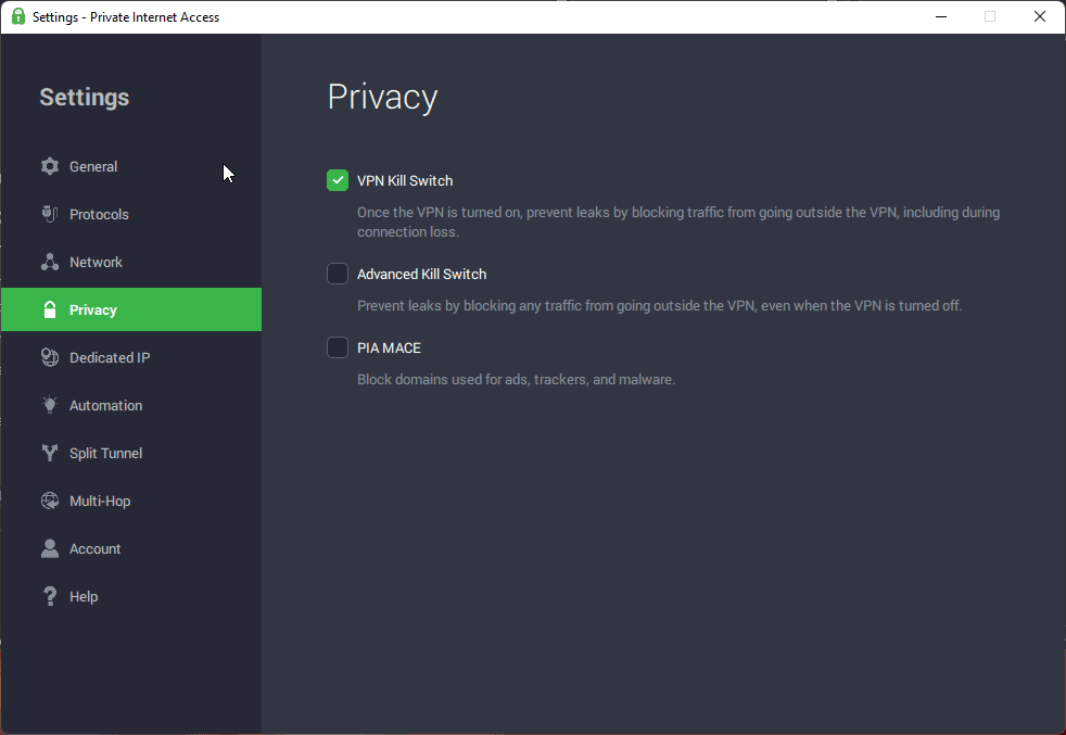 Private Internet Access Features
