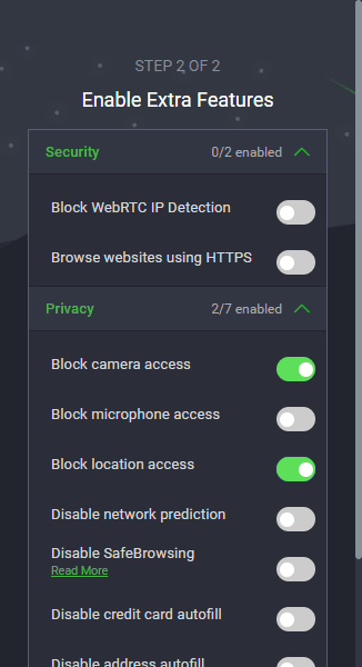 You have two security options, 7 privacy options, and 6 tracking options.
