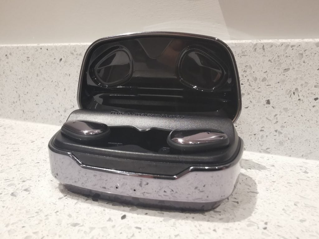 Out of the gate, these are a little different than your generic true wireless earbuds, they have a massive shiny charging case which holds a 2000 mAh charge allowing you to charge your earphones 10 times over. The earphones themselves have a marginally better than standard 6-hour battery life, so you get around 60 hours total with the case.